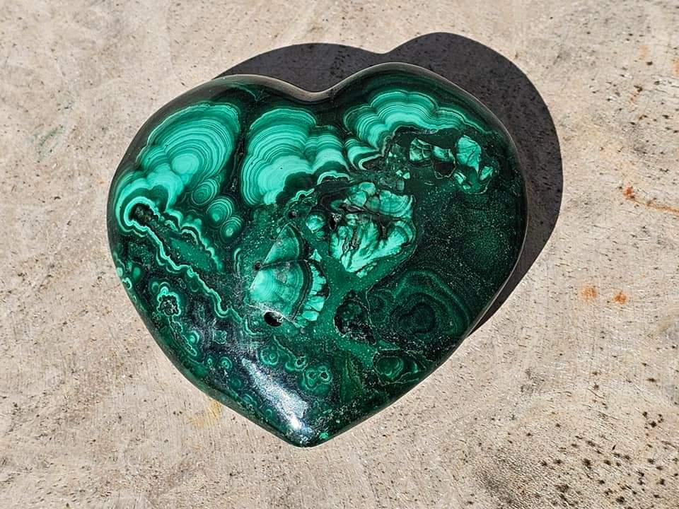 Last but not least: prachtig intrigerend zakformaat malachiet hartje met prachtige kleuren en vormen