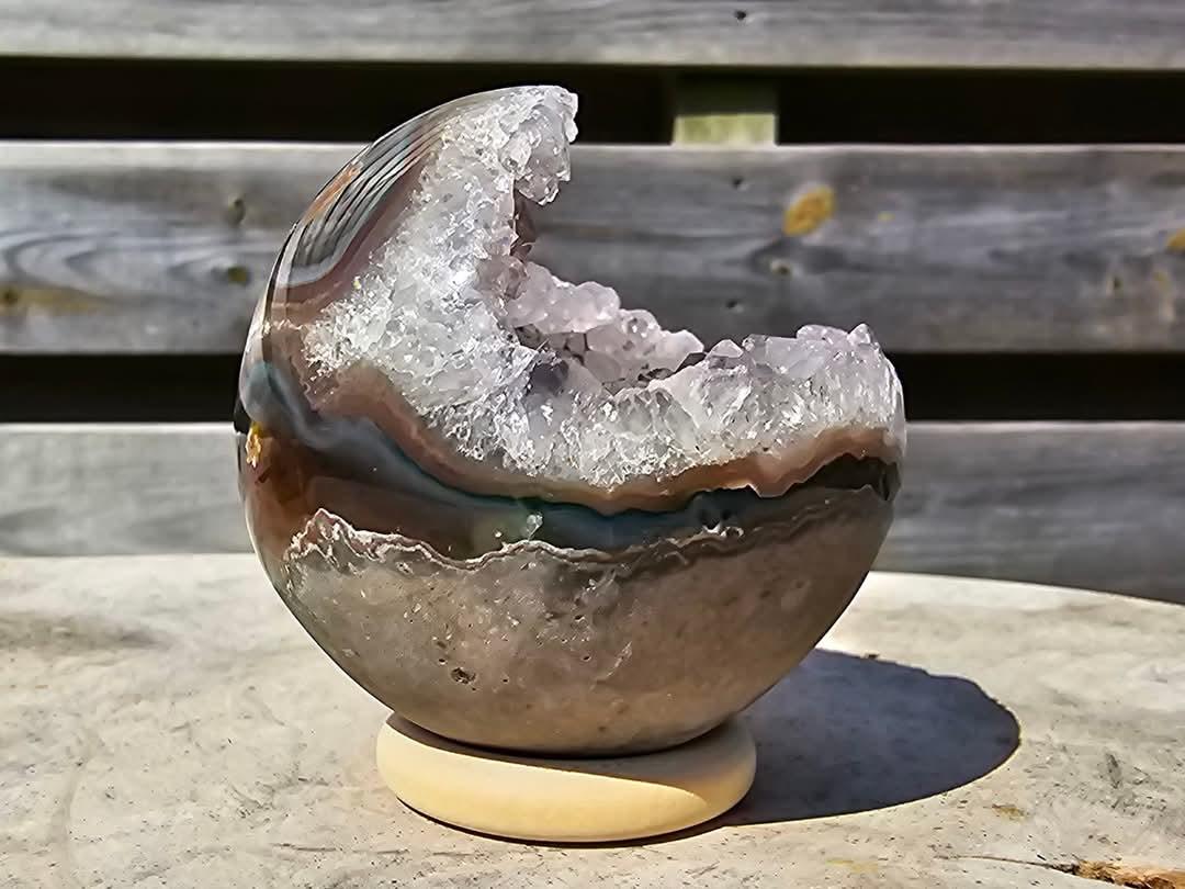 Een schitterende open geode met prachtig fonkelende kristallen in agaat met basalt moeder gesteente.